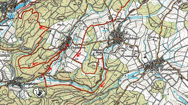 Die Fahrradroute, welche meist in unmittelbarer Nachbarschaft der Gemarkungsgrenze von Usenborn verläuft, hat eine Länge von ca. 27 km. Diese Strecke kann nur mit geländetauglichen Rädern befahren werden, da nicht alle Streckenabschnitte befestigt sind. Am besten geeignet sind Mountainbikes, Tourenräder können bei vorsichtiger Fahrweise an unbefestigten Streckenabschnitten auch benutzt werden, nicht geeignet sind Rennräder mit schmalen Reifen. Bei feuchter Witterung sind Umfahrungen einzelner Streckenabschnitte und damit Umwege notwendig, wodurch sich die Gesamtlänge etwas vergrößern würde. Die Streckenführung beinhaltet mehrere nicht unerhebliche Steigungen; notfalls muss das Rad geschoben werden.