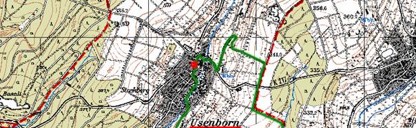 Die Wanderung beginnt um 8.00 Uhr am Dorfgemeinschaftshaus (roter Punkt) und endet auch dort um ca. 12.30 Uhr, denn schließlich hat der Gesangverein wieder Schlachtessen vorbereitet.